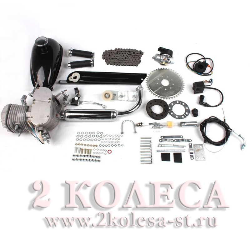 Двигатель велосипедный (в сборе) 80сс ( мех. стартер, бак, ручка газа, звезда, цепь) KOMATCU